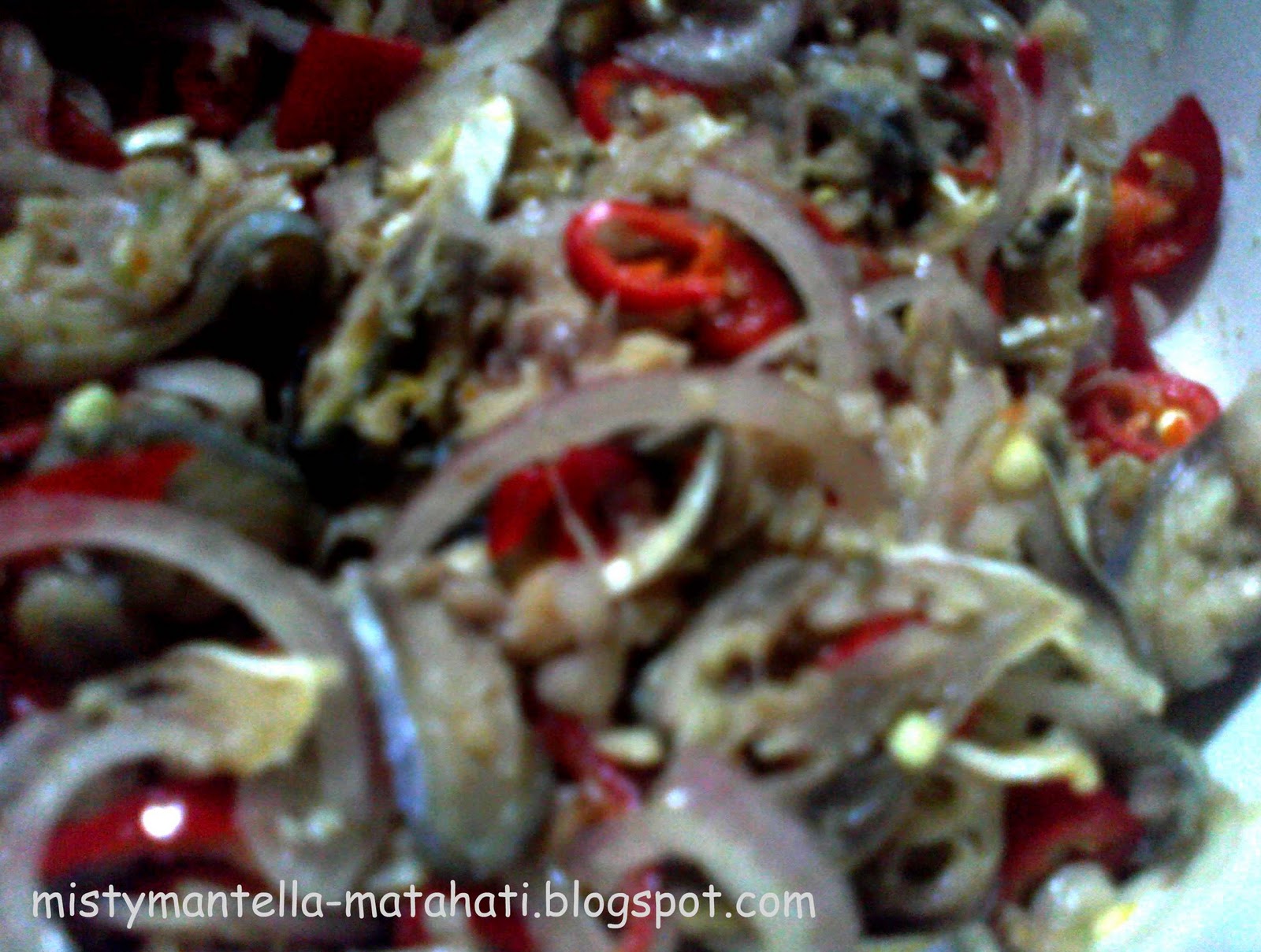 bahan2 : cili, bawang besar, limau kasturi, sedikit garam. dan digaul dengan udang atau ikan(ikan kembung masin best) yang telah dihiris kecik2. dan siap! :) memang sedap lah. Tapi kawan2 kat sini macam terkejut sebab makan mentah je, tapi sebenarnya limau tu boleh buat ikan atau udang tu 'masak'..